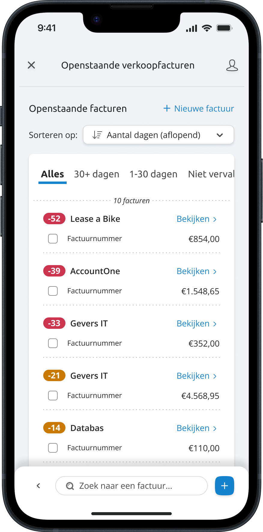 Overviews with only key information, predetermined tabs to filter and easily accessible search & sort elements.