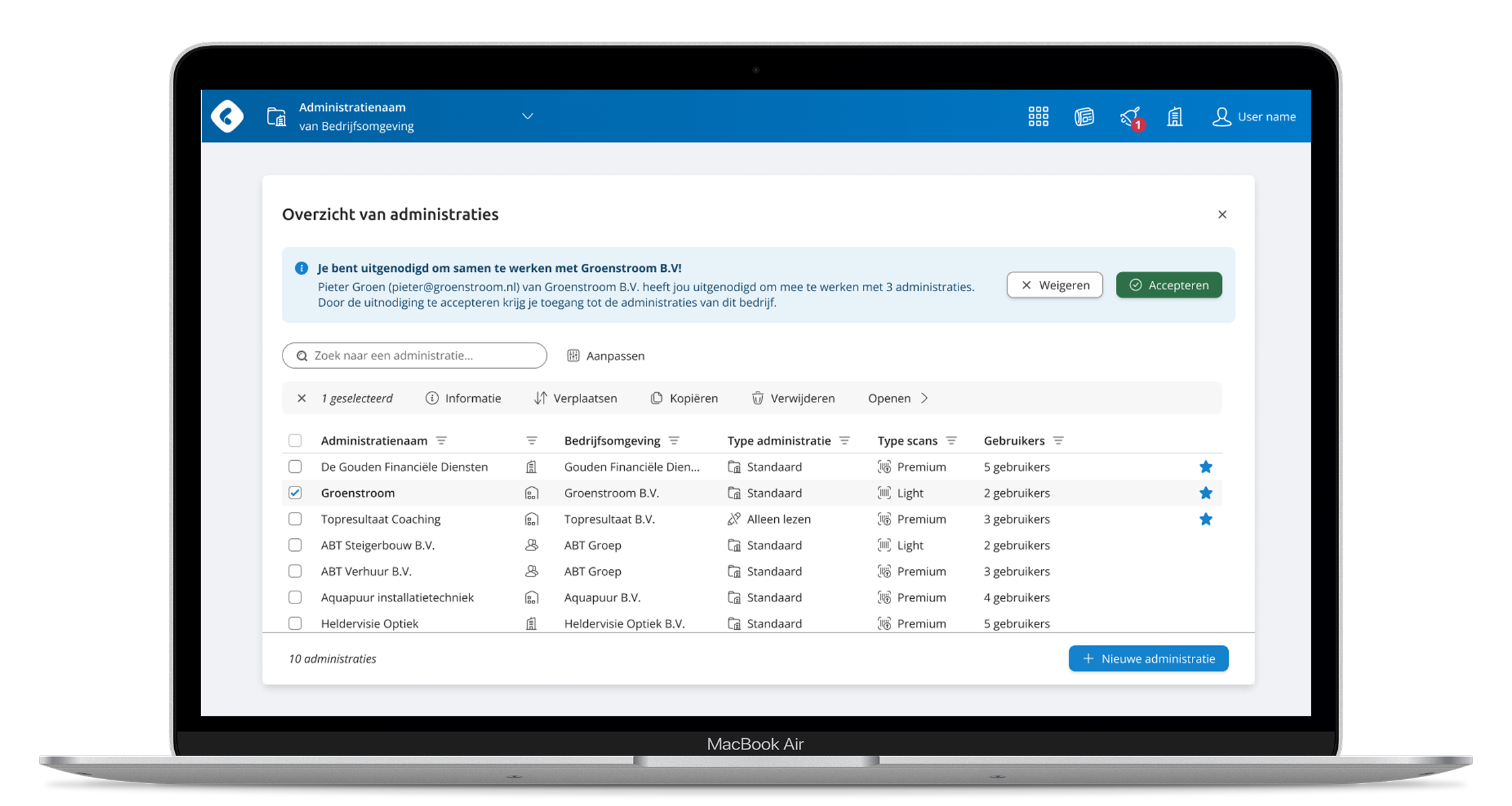 In-line notifications enable accountants to manage the administrations of their existing clients and accept new clients