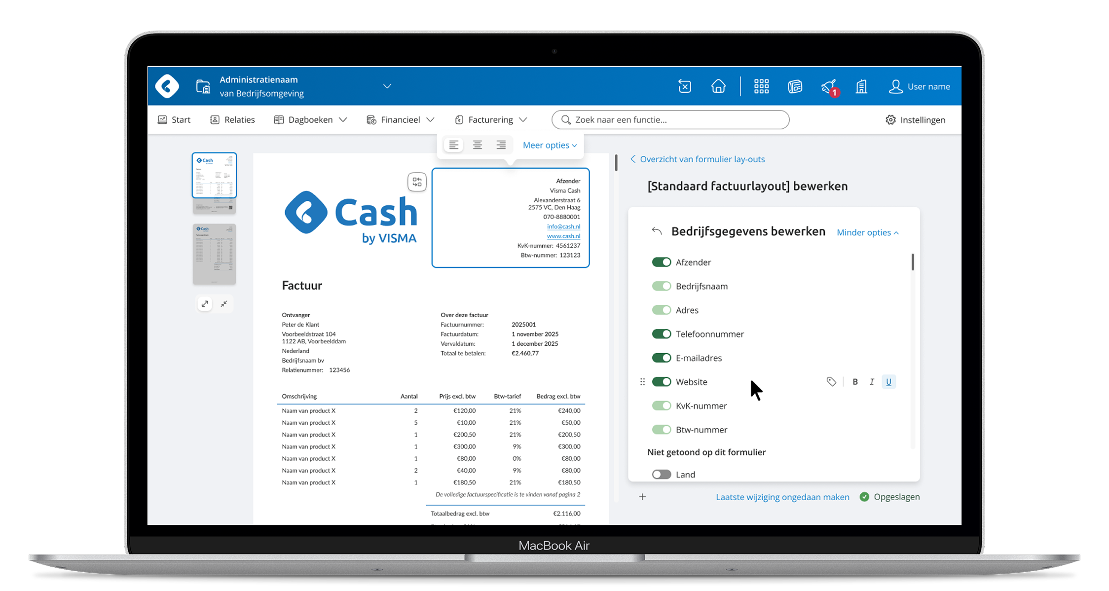 Allowing users to intuitively edit the lay-out of an invoice using WYSIWYG and auto-save.